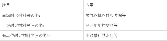 表1黑色碳化硅的牌號及其應用