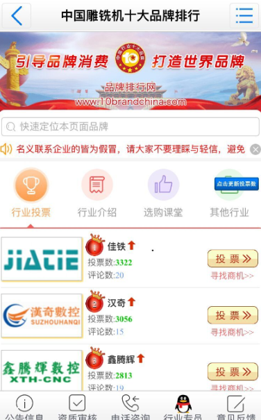 國產精雕機十大排名榜單現在每年都有幾個網站在發布,由于調查對象不同,在排名結果上也會有一定的出入。我們現在來看看2018年在某品牌網上進行的國產精雕機十大排名的情況。從圖上我們可以看到有三個品牌處于靠前的位置分列前三名。